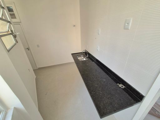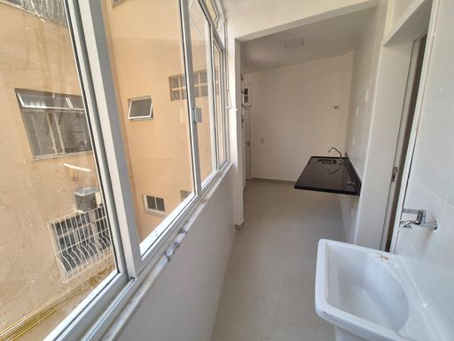 O imóvel possui uma sala para dois ambientes integrados, 2 quartos sendo 1 suíte, todos os cômodos com acabamento em porcelanato. A cozinha conta com bancada em mármore, enquanto os banheiros estão equipados com Blindex louças e duchas novas. Dependências completas incluem um quartinho, banheiro espaçoso e área de serviço. Dispõe ainda de 1 vaga de garagem na escritura.
