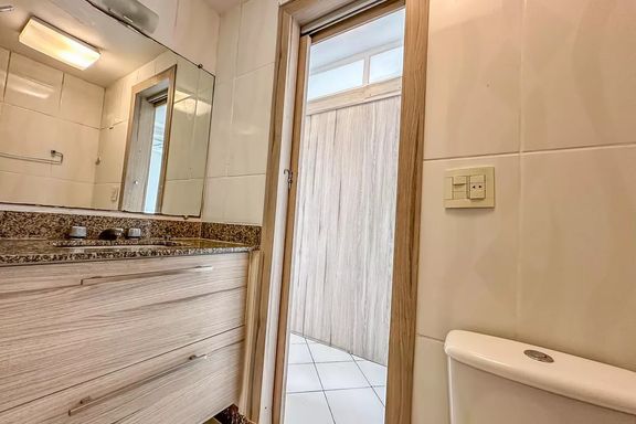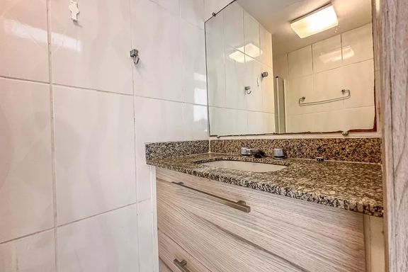 Este confortável apartamento possui móveis planejados de alta qualidade em todos os cômodos, garantindo muita praticidade e conforto para sua família e está dividido da seguinte forma: Salão em 3 ambientes; banheiro social; 03 quartos, sendo 01 suíte muito confortável, com vista panorâmica; ampla cozinha; área de serviço separada e dependência completa.