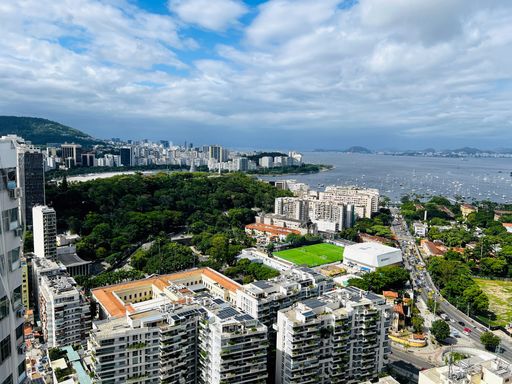 Este confortável apartamento está localizado na parte interna do condomínio, ao lado do bosque, o que garante para sua família um ambiente silencioso, fresco e super aconchegante. Com belas vistas para o verde, o Cristo Redentor, a Baia da Guanabara e o Pão-de-Açúcar, além de uma panorâmica de todo o Bairro de Botafogo.