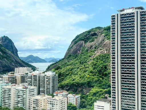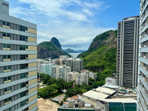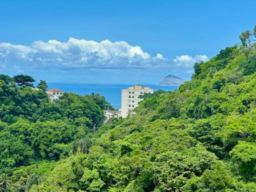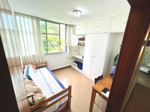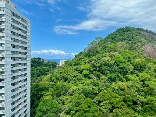 Este confortável apartamento está localizado na parte interna do condomínio, de frente para o bosque, o que garante para sua família um ambiente silencioso, fresco e super aconchegante. Com belas vistas, sendo para um lado o verde das montanhas e o mar de Copacabana ao fundo, e para o outro lado, a Baia da Guanabara, o Pão-de-Açúcar e a Praia Vermelha. Indescritível!!!