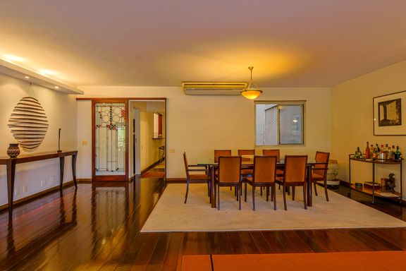 Este apartamento de alto padrão oferece 238 m² de puro requinte em localização cobiçada na Avenida Epitácio Pessoa. O hall dá acesso a um amplo living com três ambientes muito bem definidos, lavabo e sala íntima, distribuídos de forma harmoniosa. São 4 dormitórios, sendo 2 suítes, a master com hidromassagem e closet. A copa-cozinha planejada, a despensa e a dependência completa, com área de serviço separada completa o conforto e facilidade do dia-a-dia. 2 vagas de garagem na escritura