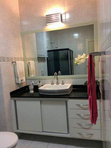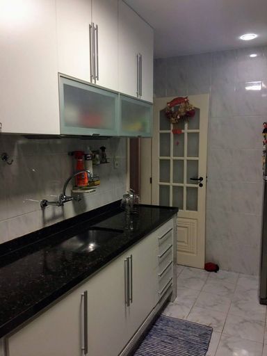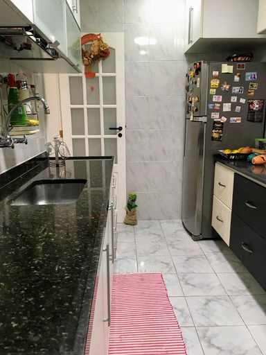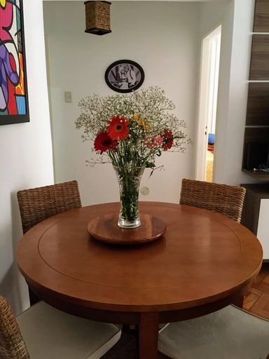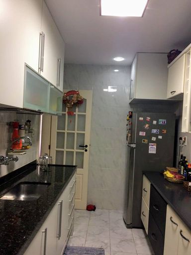 O apartamento é dividido da seguinte forma: Ampla sala em 2 ambientes, 2 quartos, banheiro social, cozinha grande totalmente planejada, área de serviço e dependência completa. Tudo muito bem mobiliado e com bastante armários.1 vaga de garagem.