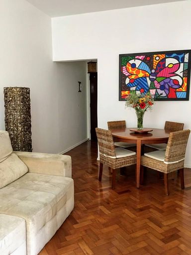 Alugo apartamento reformado com móveis planejados nos quartos, cozinha e banheiro (NÃO É MOBILIADO - SÓ POSSUI OS MÓVEIS PLANEJADOS), com excelente padrão em rua nobre de Copacabana, a uma quadra da praia e a 10 minutos do metrô. Rua residência e tranquila com a comodidade de ter farto comércio, serviços e transporte público nos arredores.