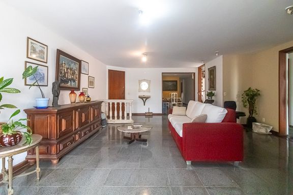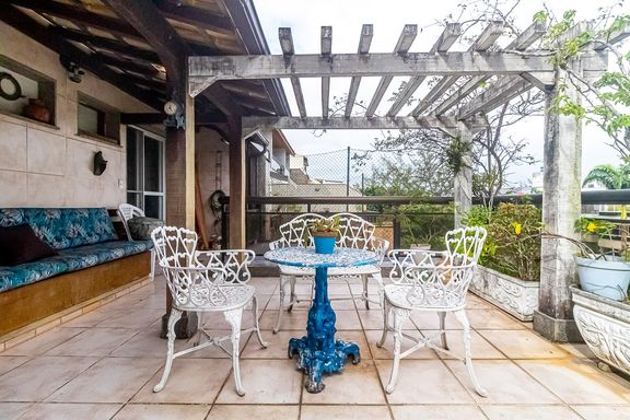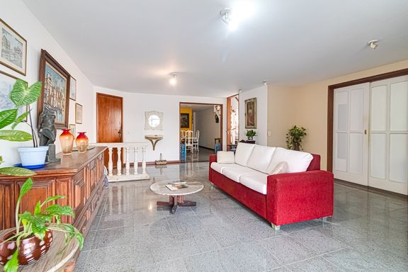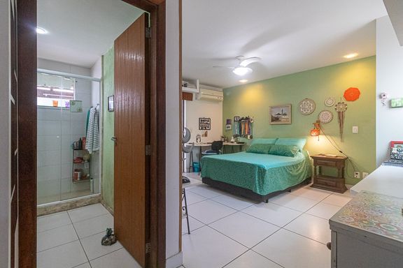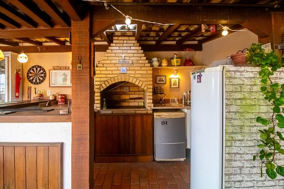Imóvel com planta ampla, composto por sala, 5 quartos, sendo 3 suítes, banheiro social, lavabo, cozinha, área de serviço, dependência completa e área gourmet com churrasqueira, chuveiro e instalação para Jacuzzi.
